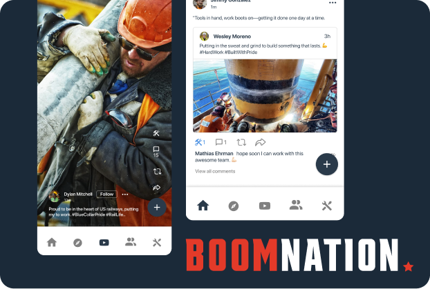 BoomNation connects skilled trade workers with employers and jobs. I lead UX by planning sprints, designing, testing features, building the design system.
